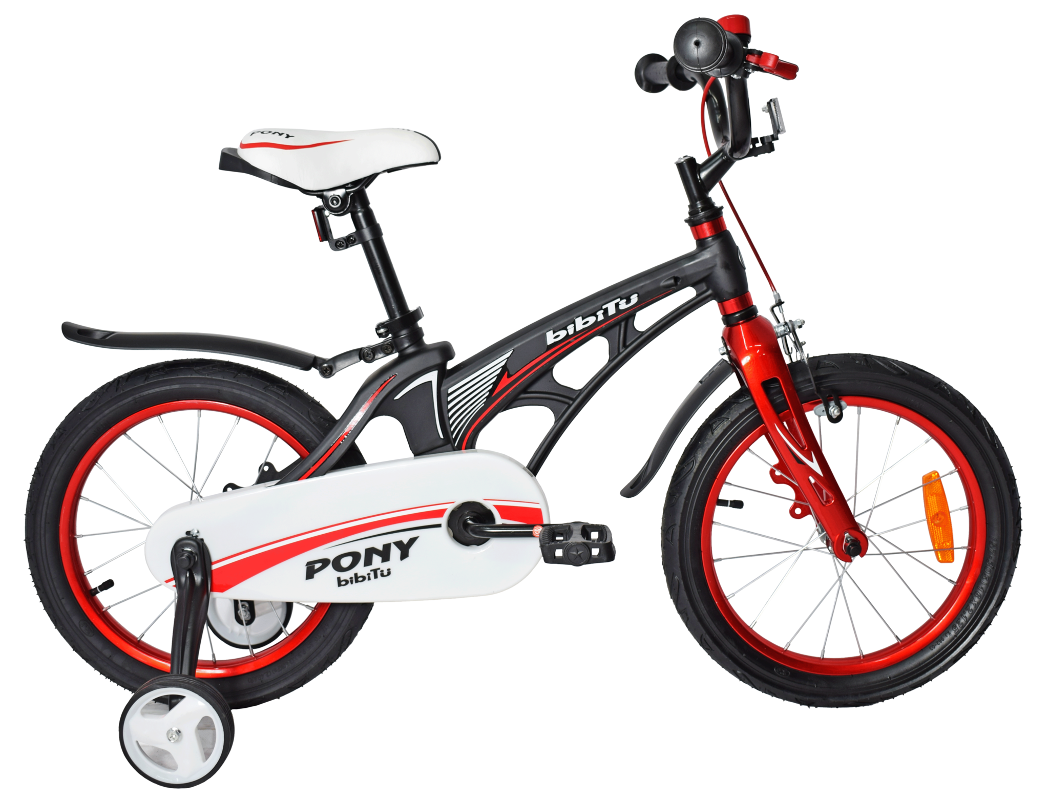 PONY - легкий и стильный велосипед с магниевой рамой, имеет все необходимое для безопасного катания, а именно боковые колеса, защиту цепи, дополнительный ручной тормоз. Анатомические седло и руль добавляют комофорта при катании.
