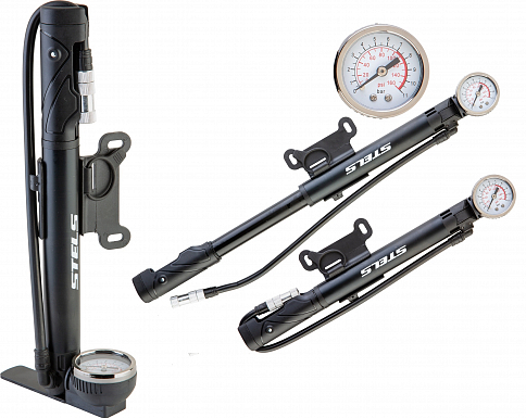 Насос ручной M25B-04 STELS алюминиевый с маноментром серебристо-чёрный 200мм