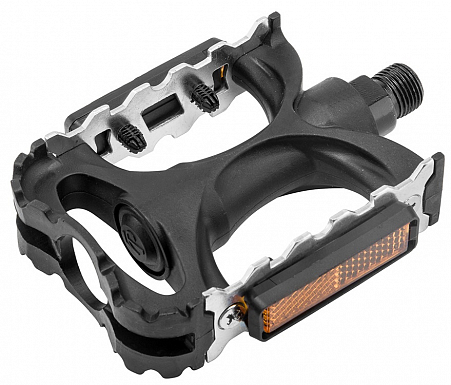Педали FP-916 FEIMIN, ось 9/16" со светоотражателями, пластиковые/алюминиевые чёрно-серебристые в ин