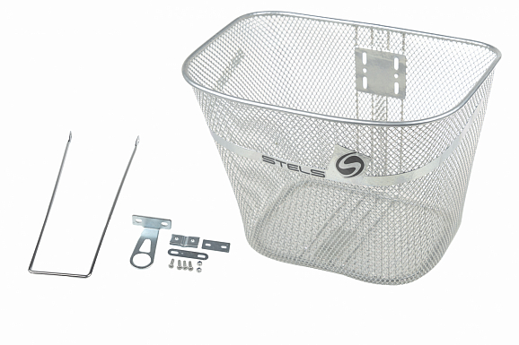 Велокорзина JL-044-3 передняя для дорожных велосипедов 26", стальная, серебр., крепл. за ось втулок
