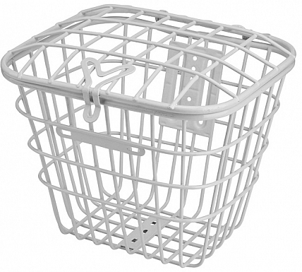Велокорзина JL-075 передняя для дорожных велосипедов 28", сталь.,бел.,крепл. за ось втулок с крышкой