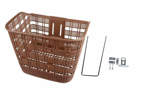 Велокорзина TEN-033 передняя, плетёная, пластиковая коричневая