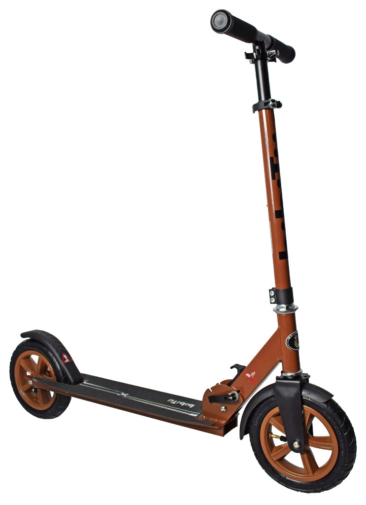 CROSS - двухколесный самокат повышенной проходимости, широкие надувные колеса обеспечивают мягкость и плавность хода по неровной дороге. Оснащен складным механизмом и регулировкой руля.